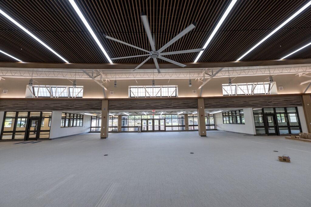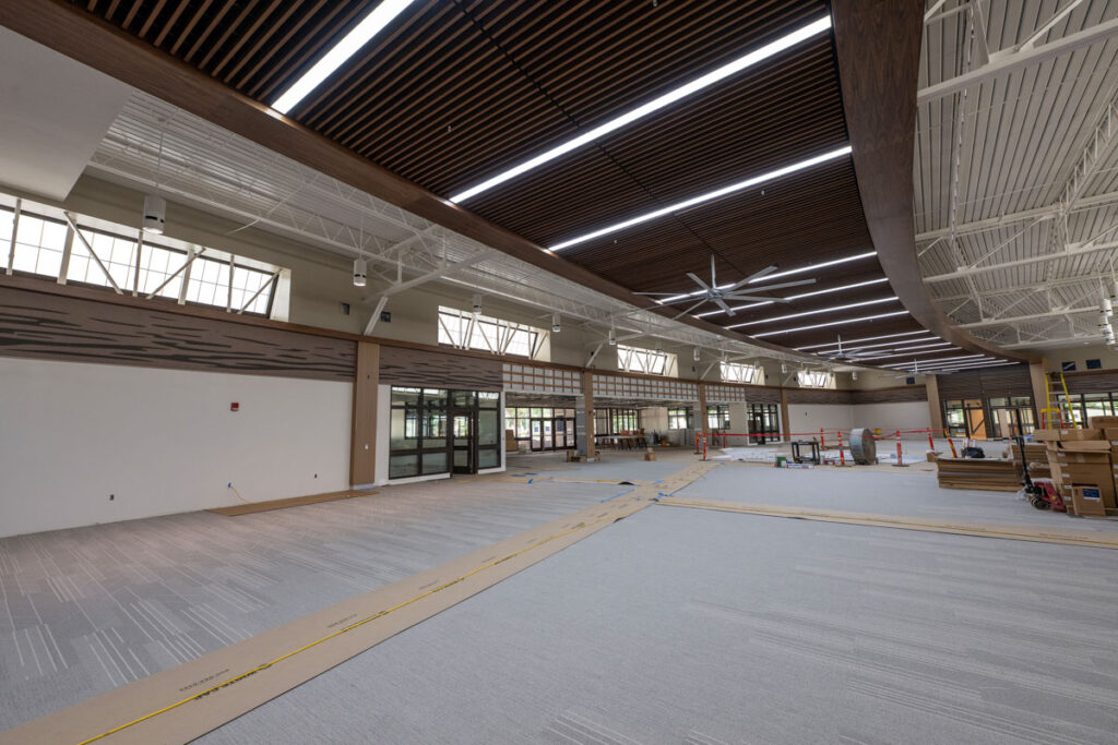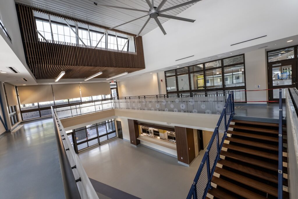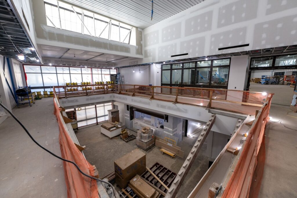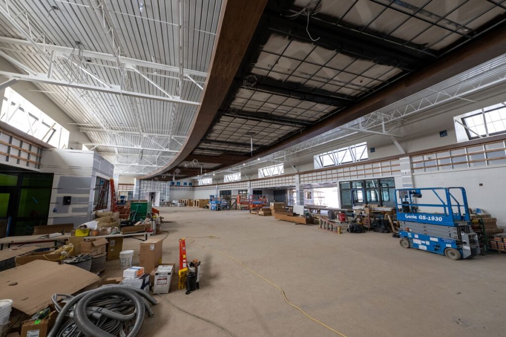 Inside the building, interior painting has begun, introducing playful and vibrant color schemes – especially noticeable in the second-floor flex rooms and conference spaces. These splashes of color are a preview of the dynamic and welcoming learning environments to come.